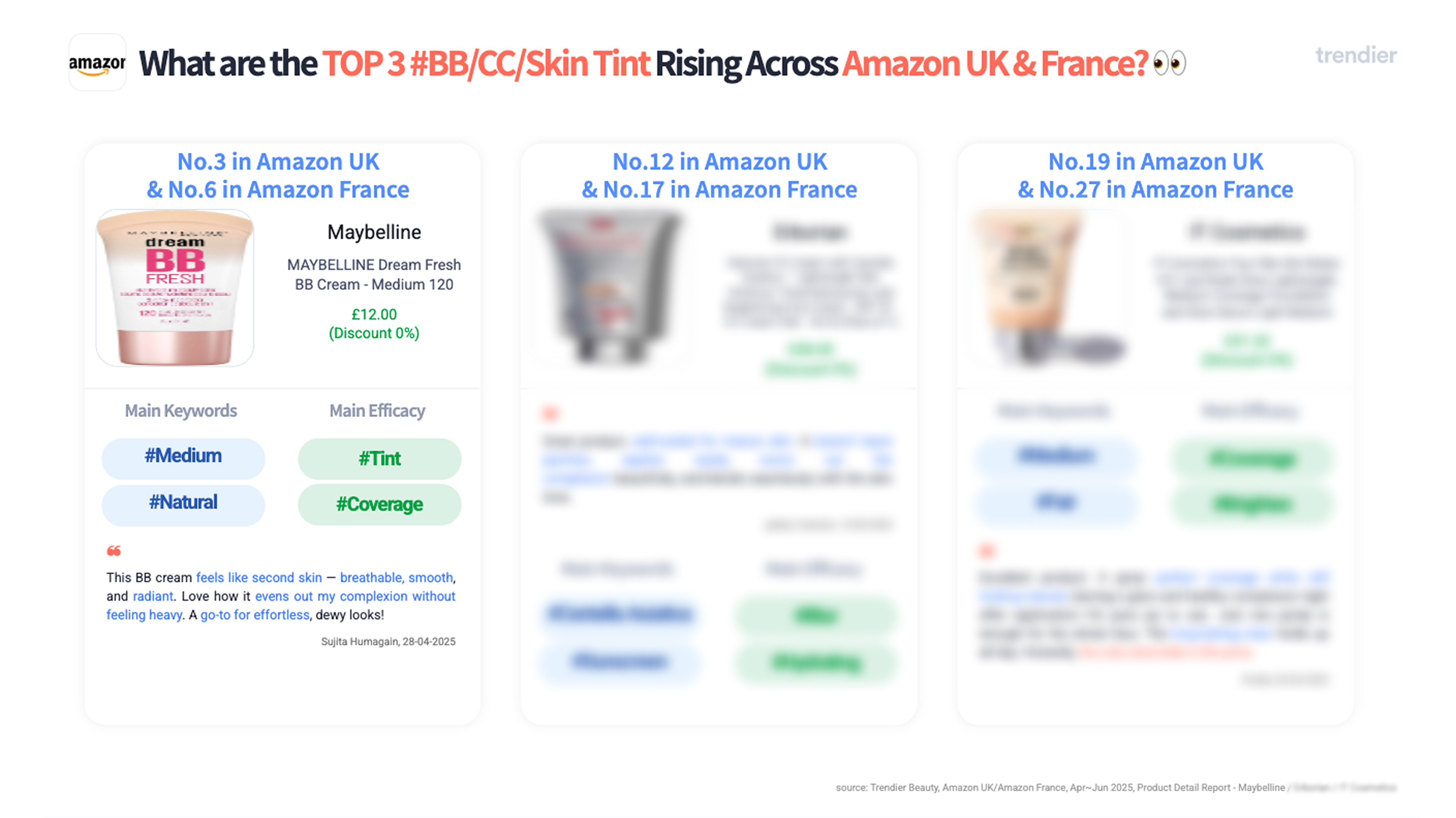 💡 Available this week only, get full access to the latest BB/CC Skin Tint rankings from Amazon UK and France. Discover which products are climbing the charts and how shade, texture, and coverage trends differ across markets. [Read the complete report here.]