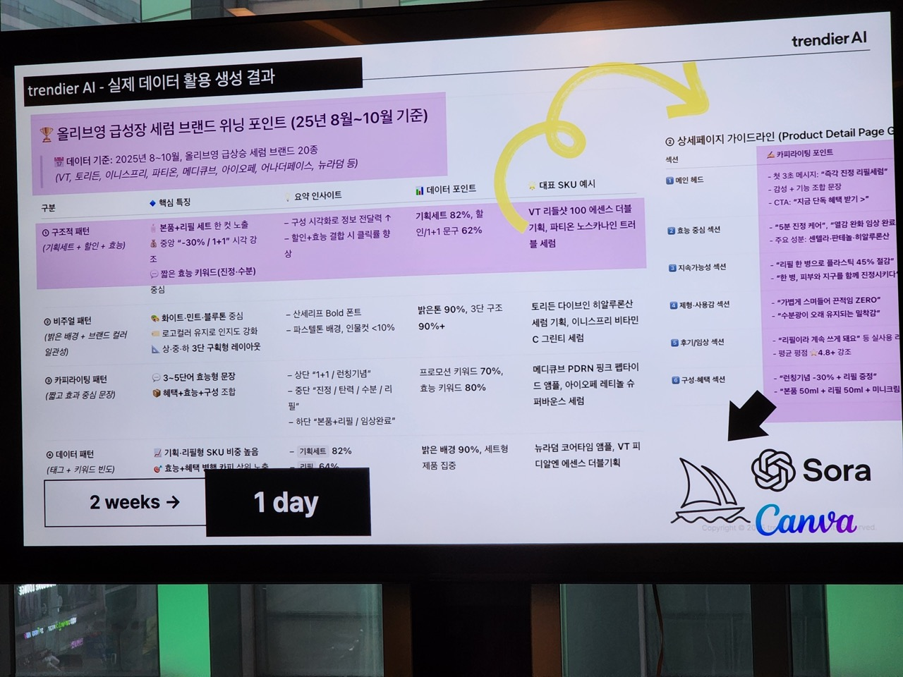 Trendier instead focuses on real market data—product listings, detail pages, and consumer reviews. Its first service, the Trendier Dashboard, used AI to analyze all keywords and reviews displayed on Olive Young product pages.