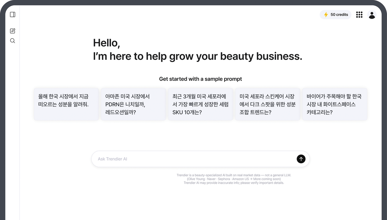 이들은 트렌디어 팀이 2018년부터 수집해온 뷰티 시장 데이터의 오류 패턴과 고객 피드백을 학습해 왔습니다. 어떤 표현에서 오해가 생기는지, 어떤 키워드가 노이즈인지 선제적으로 걸러내기 때문에 시간이 지날수록 더 높은 품질의 정보를 제공합니다.