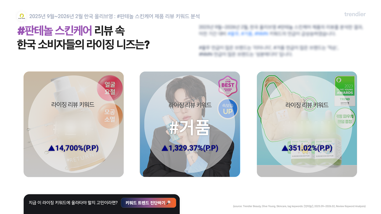 트렌디어 AI는 Beauty AI Bootcamp 2026 4월 세션을 온디맨드로 공개했다. 이번 세션에서는 시장 검증 과정에서 반복적으로 발생하는 리서치 업무를 최대 90%까지 단축한 실제 활용 방식을 소개한다. 특히 여드름 및 선케어 카테고리는 성분, 효능, 사용감, 채널별 반응이 빠르게 변화하는 영역이다. 하지만 실무에서는 여전히 이러한 신호들이 분절된 상태로 관리되며, 의사결정까지 이어지는