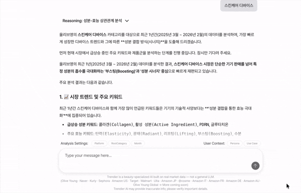 trendier AI가 국내 스킨케어 디바이스 리뷰 데이터를 기반으로,