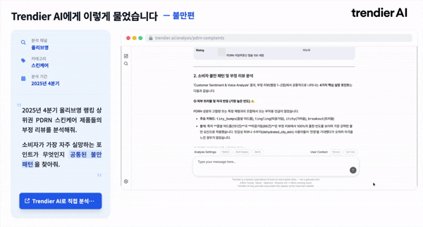 trendier AI가 리뷰 분석부터 미충족 니즈 발굴까지 자동화해 드립니다. |