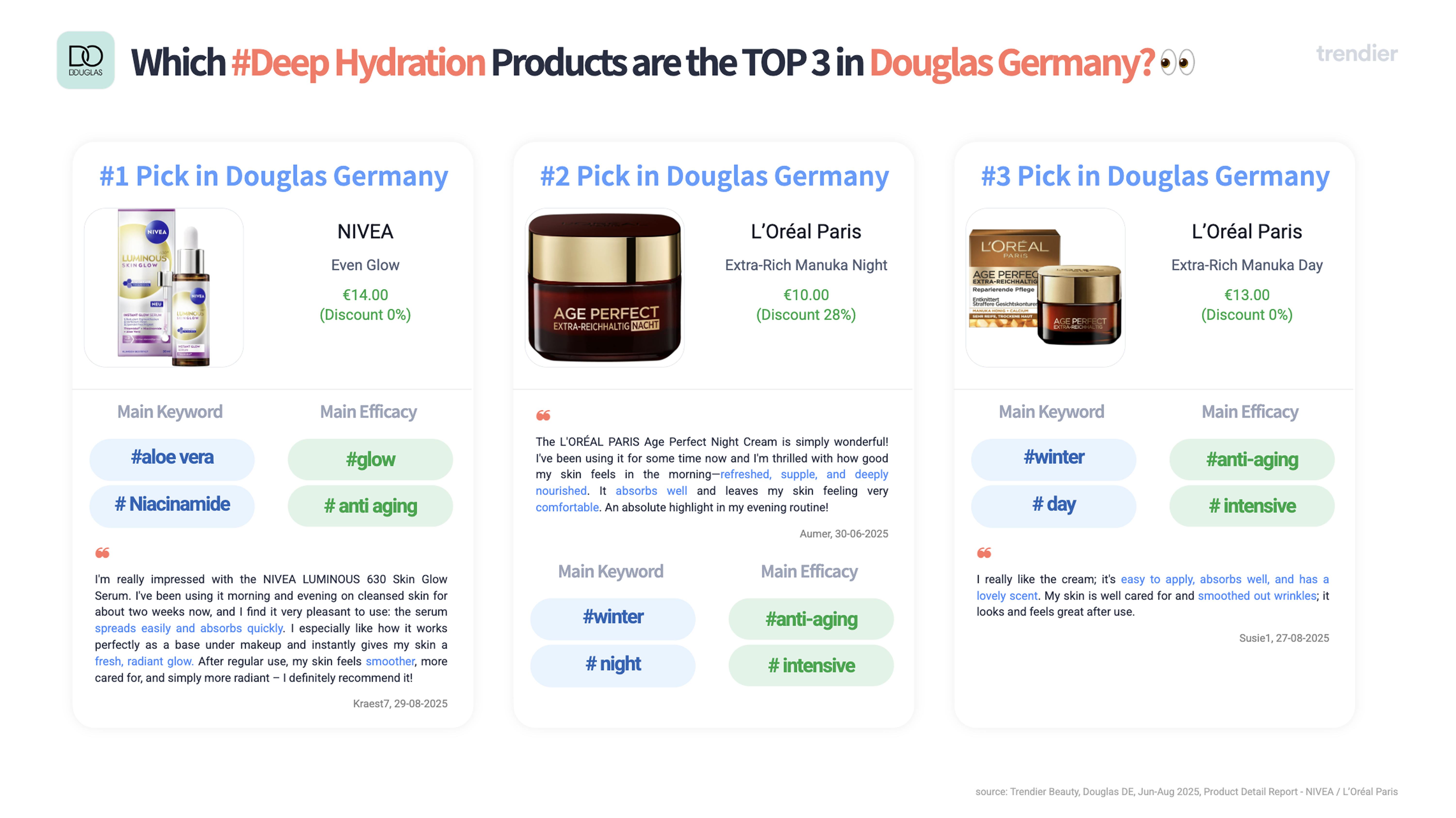 💡 Exclusively this week, access the latest Deep Hydration report from Douglas Germany and Amazon UK. Explore which products are leading consumer favorites, and uncover the key ingredients and claims shaping Europe’s hydration market. [Read the full report here.]