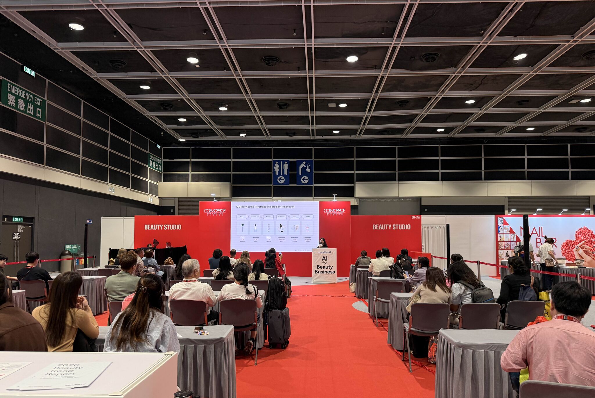 At Cosmoprof Asia 2025, the largest beauty show in Asia, Trendier AI introduced the next chapter of K-beauty to a global audience. With over 70,000 professionals and 2,800 brands attending, Trendier AI’s sessions stood out, drawing strong interest as seats for both Cosmotalk and Beauty Stage reached full capacity early on.