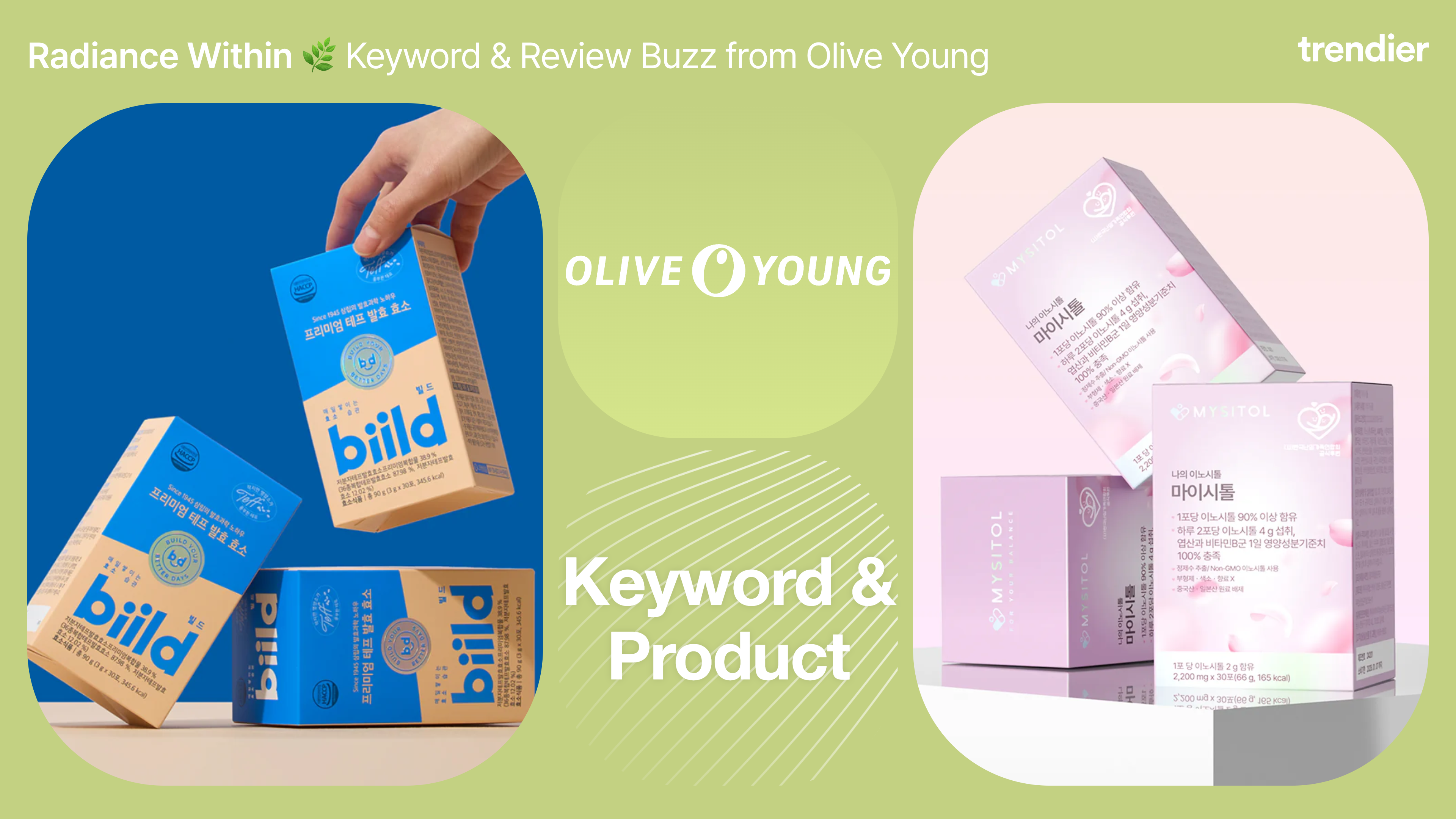 Spot rising marketing and review keywords at Olive Young Korea.