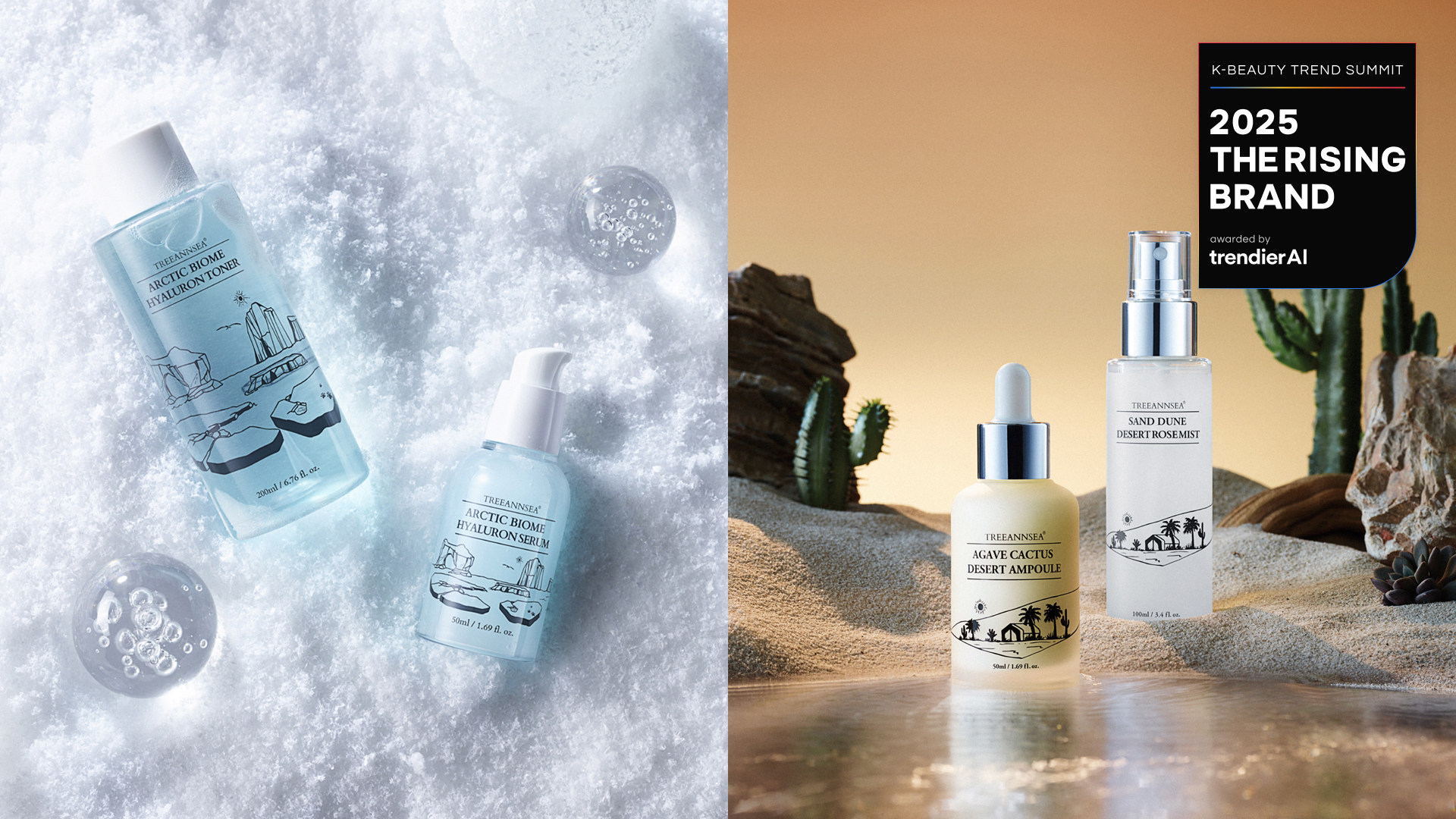 Within this shift, TREEANNSEA is gaining attention for formulas inspired by extreme natural environments, such as the Arctic Biome Hyaluron and Agave Cactus Desert lines, which align with growing interest in gel textures, vegan formats, and long-lasting moisture.