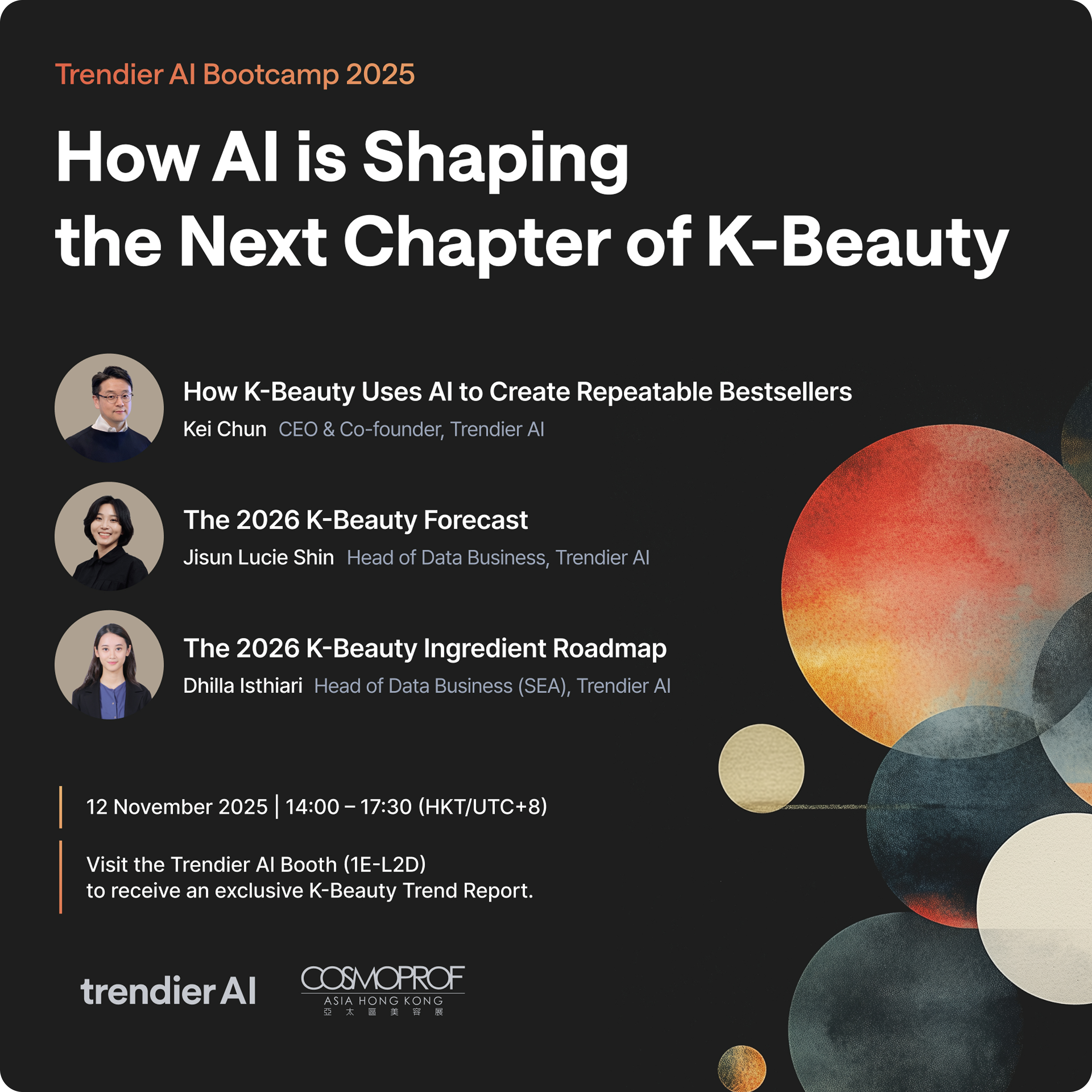 At Cosmoprof Asia Hong Kong 2025, where over 70,000 professionals and 2,800 brands gather to shape the next chapter of global beauty, Trendier will present “How AI Is Shaping the Next Chapter of K-Beauty.”