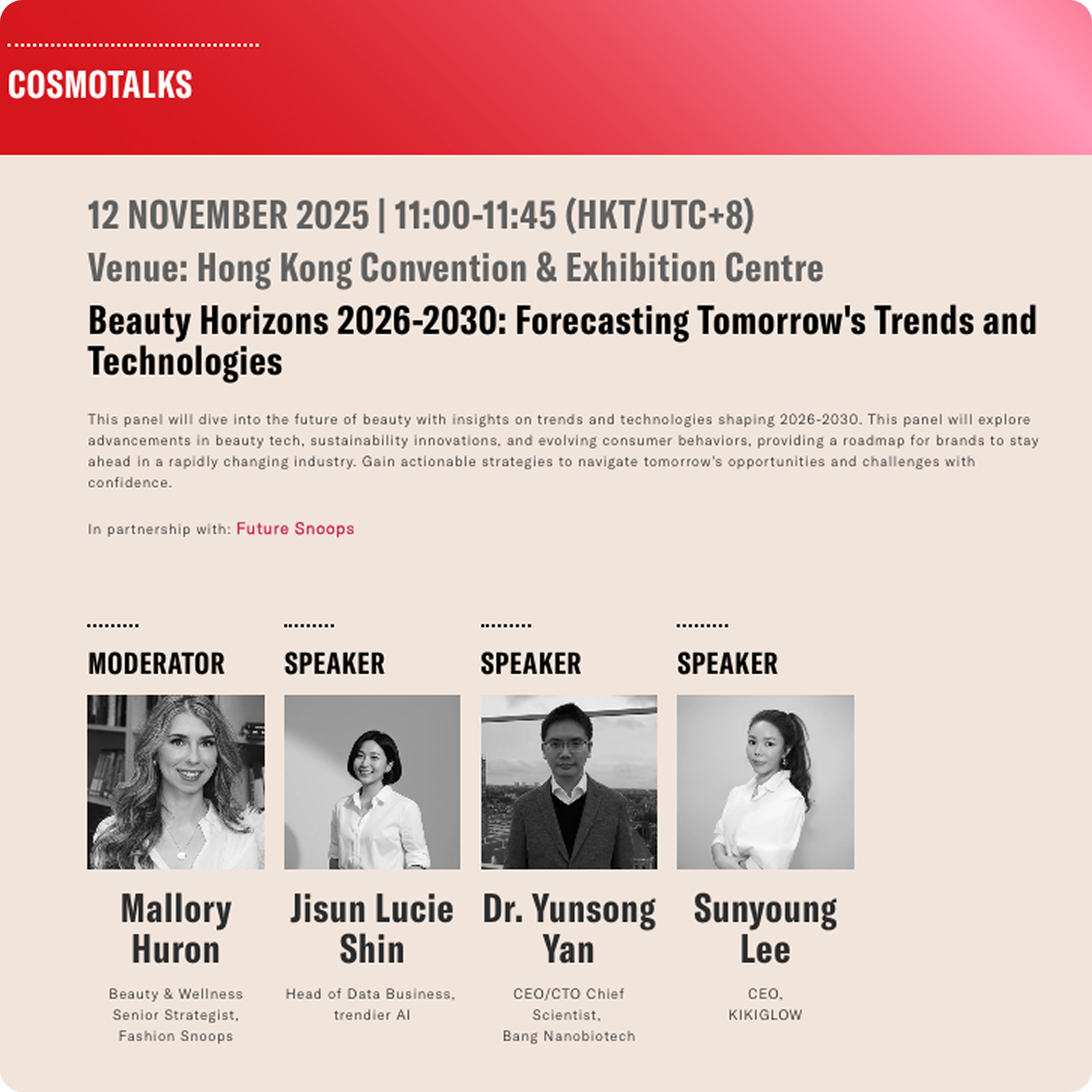 Trendier AI will also join global experts at CosmoTalks: Beauty Horizons 2026–2030 during Cosmoprof Asia Hong Kong 2025, sharing insights on how AI, data, and biotech are shaping the next decade of beauty innovation.