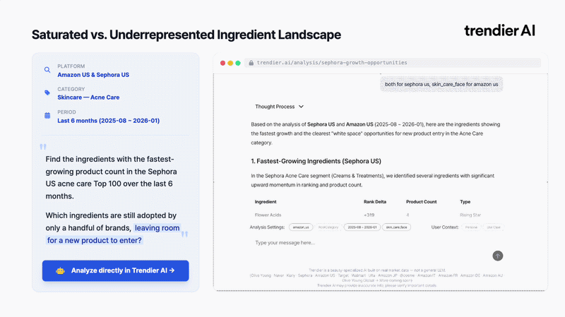 “Which ingredients are still adopted by only a handful of brands, leaving room for a new product to enter?”